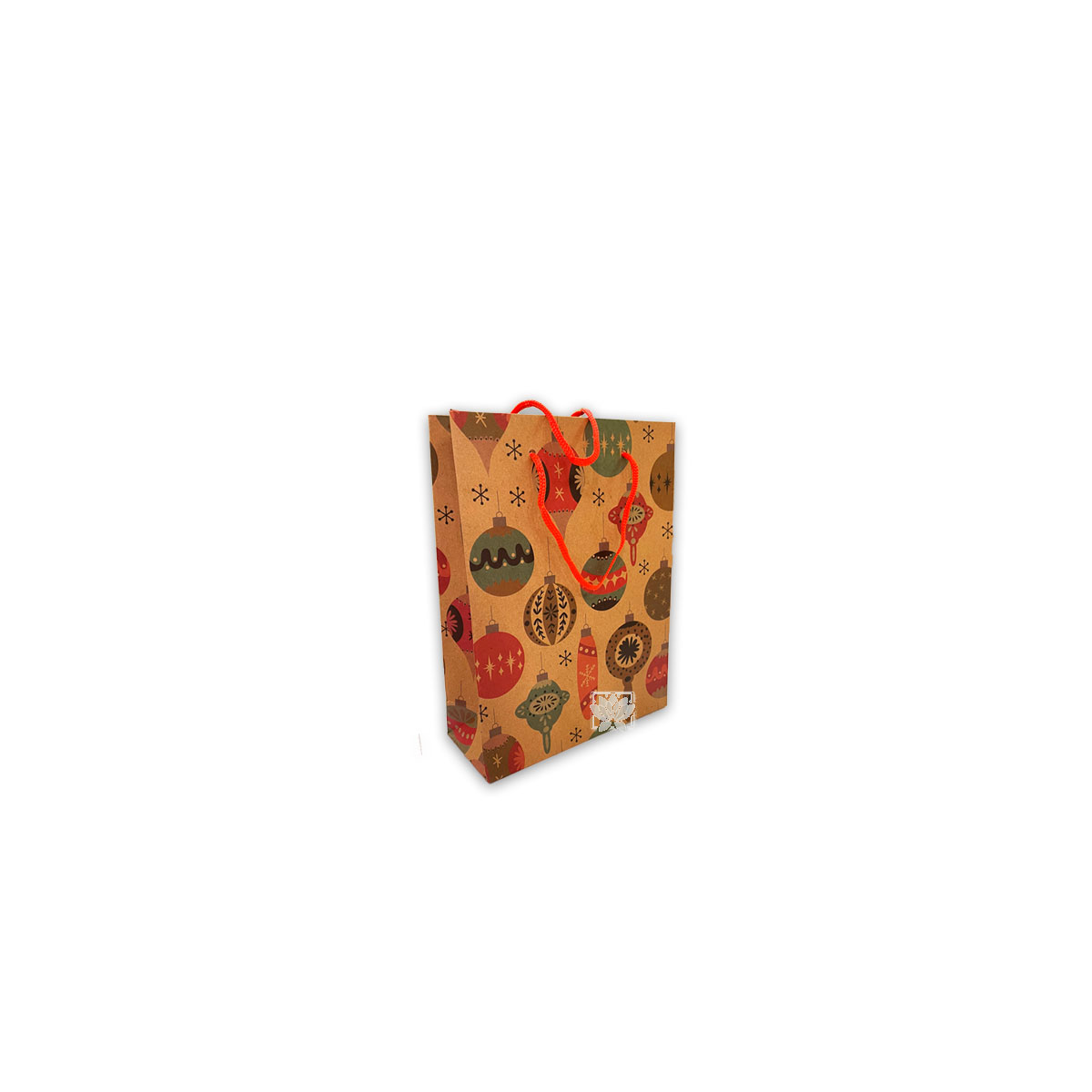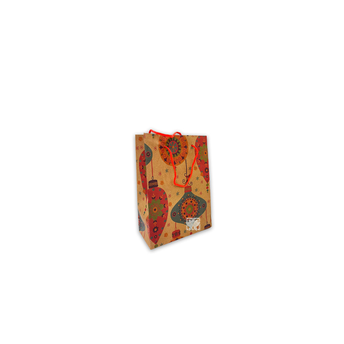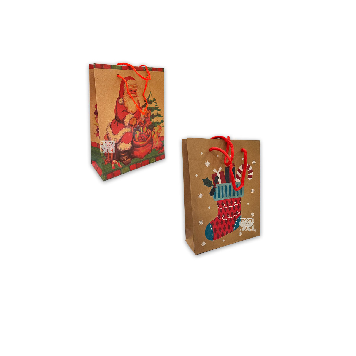 Bolsa de papel kraft, con diseño Navideño fuelle y manillas.