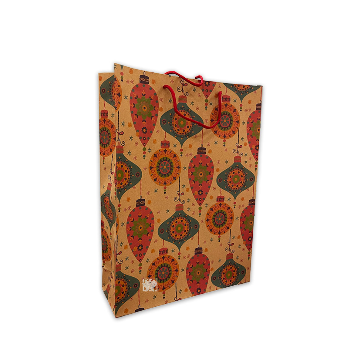 Bolsa de papel kraft, con diseño Navideño fuelle y manillas.