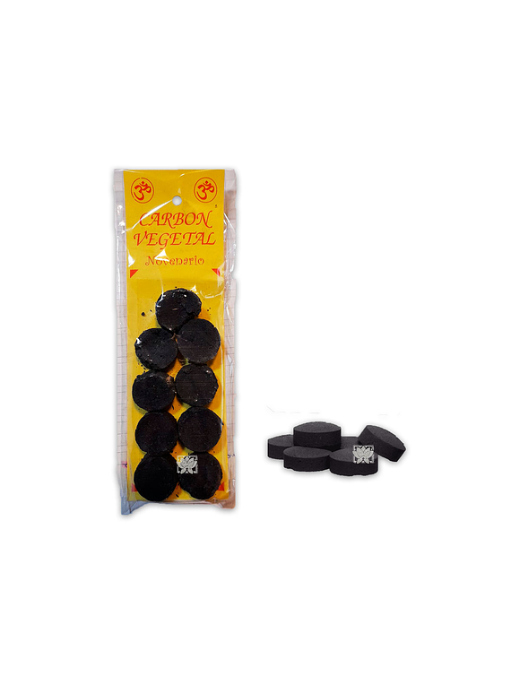 Carbón vegetal para Sahumerio el Blister o Display trae 9 unidades.