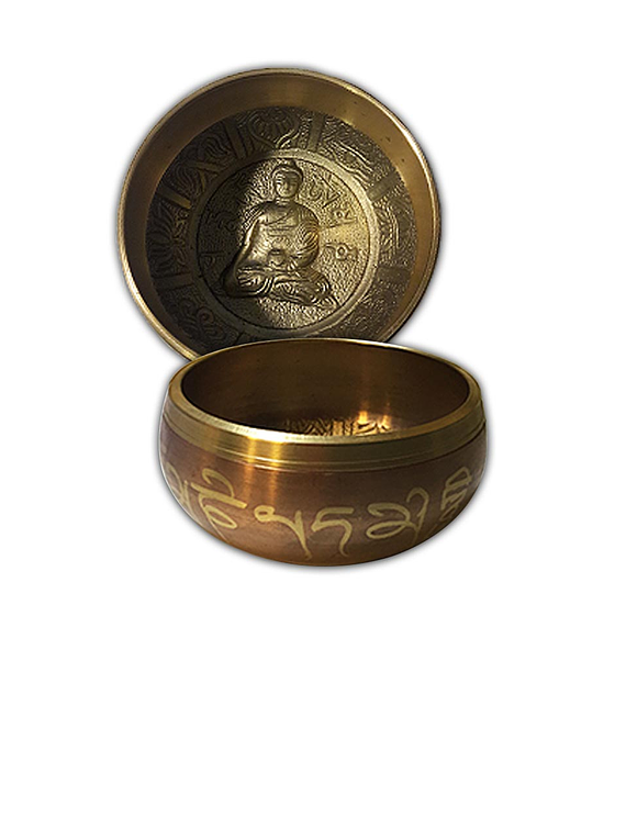 Cuencos de metal Tallados , utilizados como métodos de curación, relajación y meditación. Colores Surtidos. Incluye un palo de madera