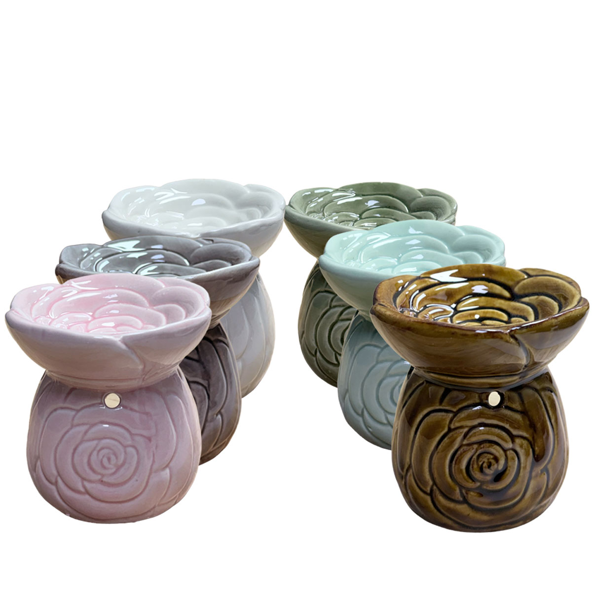 Difusor de cerámica, diseño de flor, ideal para aromatizar ambientes con un hermoso elemento decorativo.