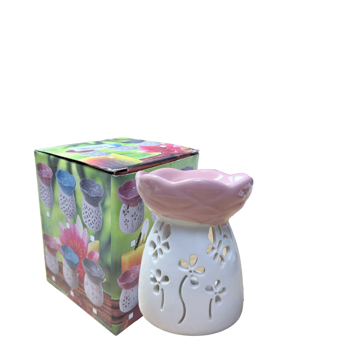 Difusor de cerámica con diseño floral de pétalos, ideal para quemar aceites esenciales y como recuerdo en eventos especiales como bautizos y baby shower. Combina funcionalidad y estética en un formato compacto que aporta un toque decorativo a cualquier ambiente.