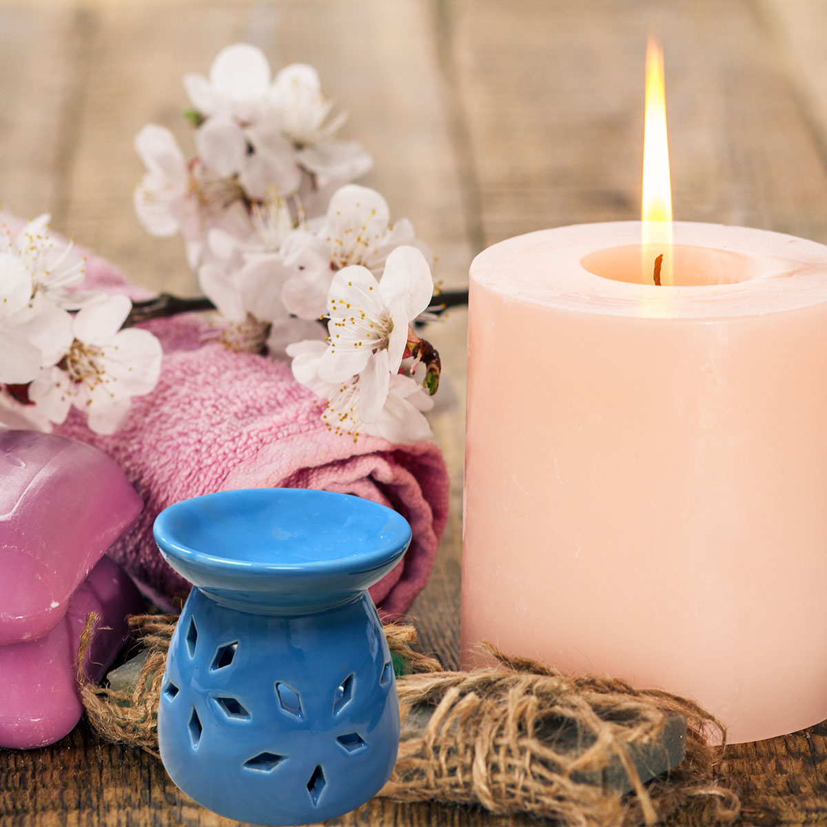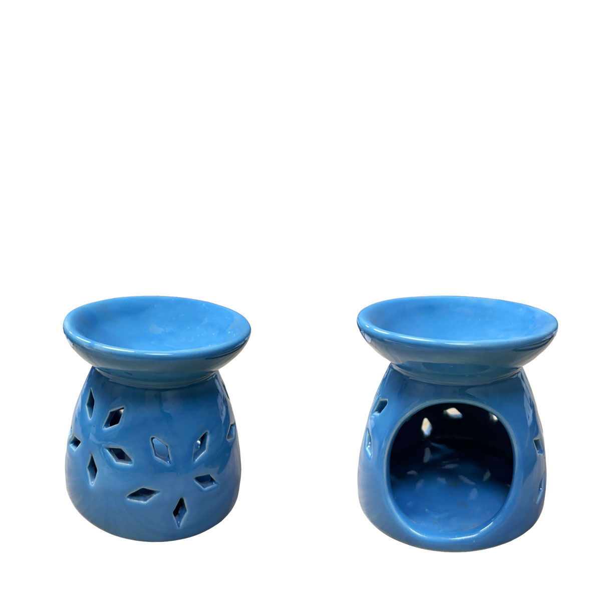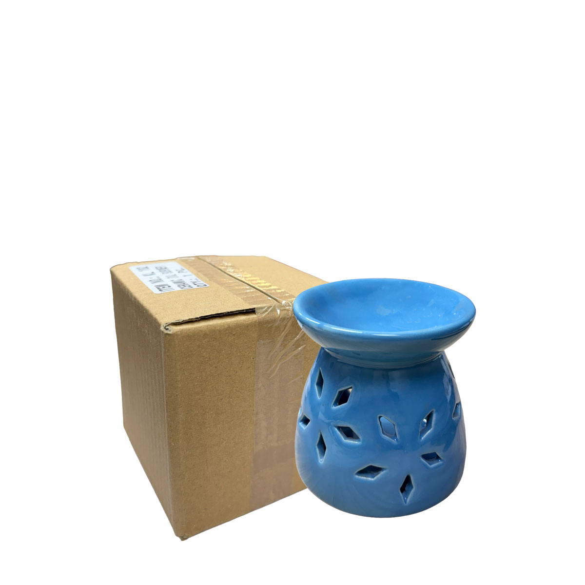 Difusor de cerámica elegante y funcional para quemar y difundir aceites esenciales con un diseño geométrico tipo flor que aporta un toque decorativo a cualquier ambiente.