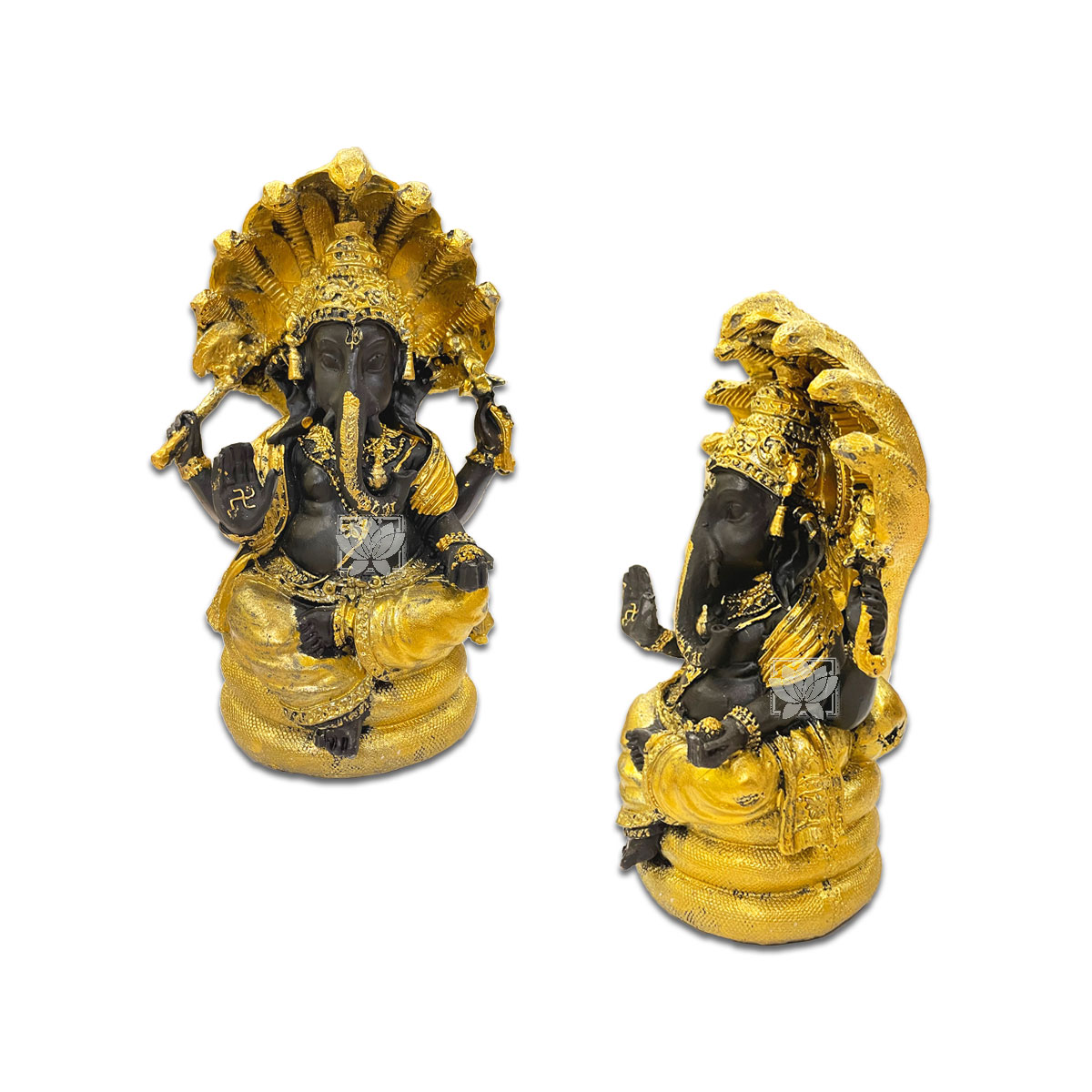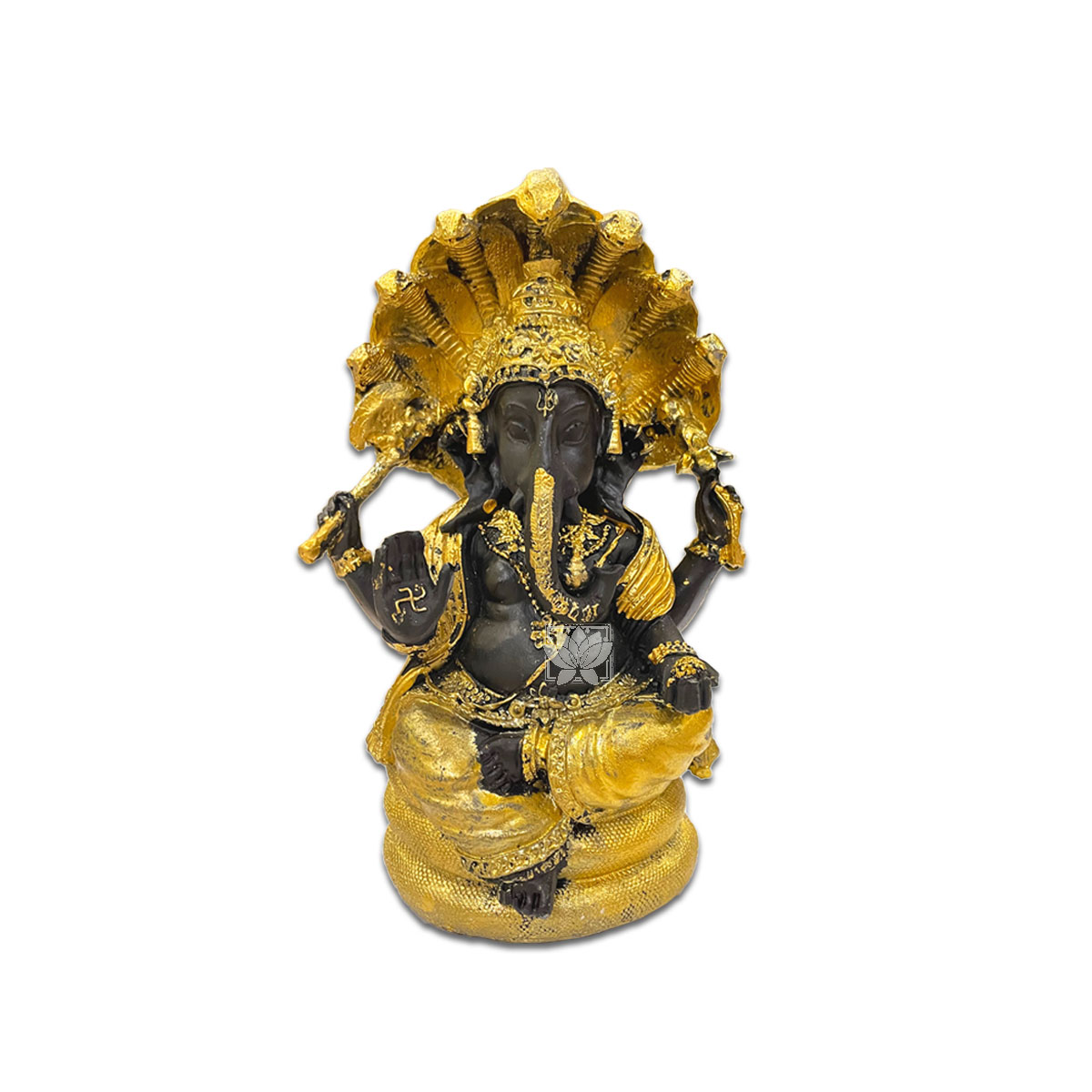 Dios Ganesh en Poliresina 7", consta de 1 piezas de diseño en poliresina Color Negro y detalles en color dorado marcados del dios ganesh