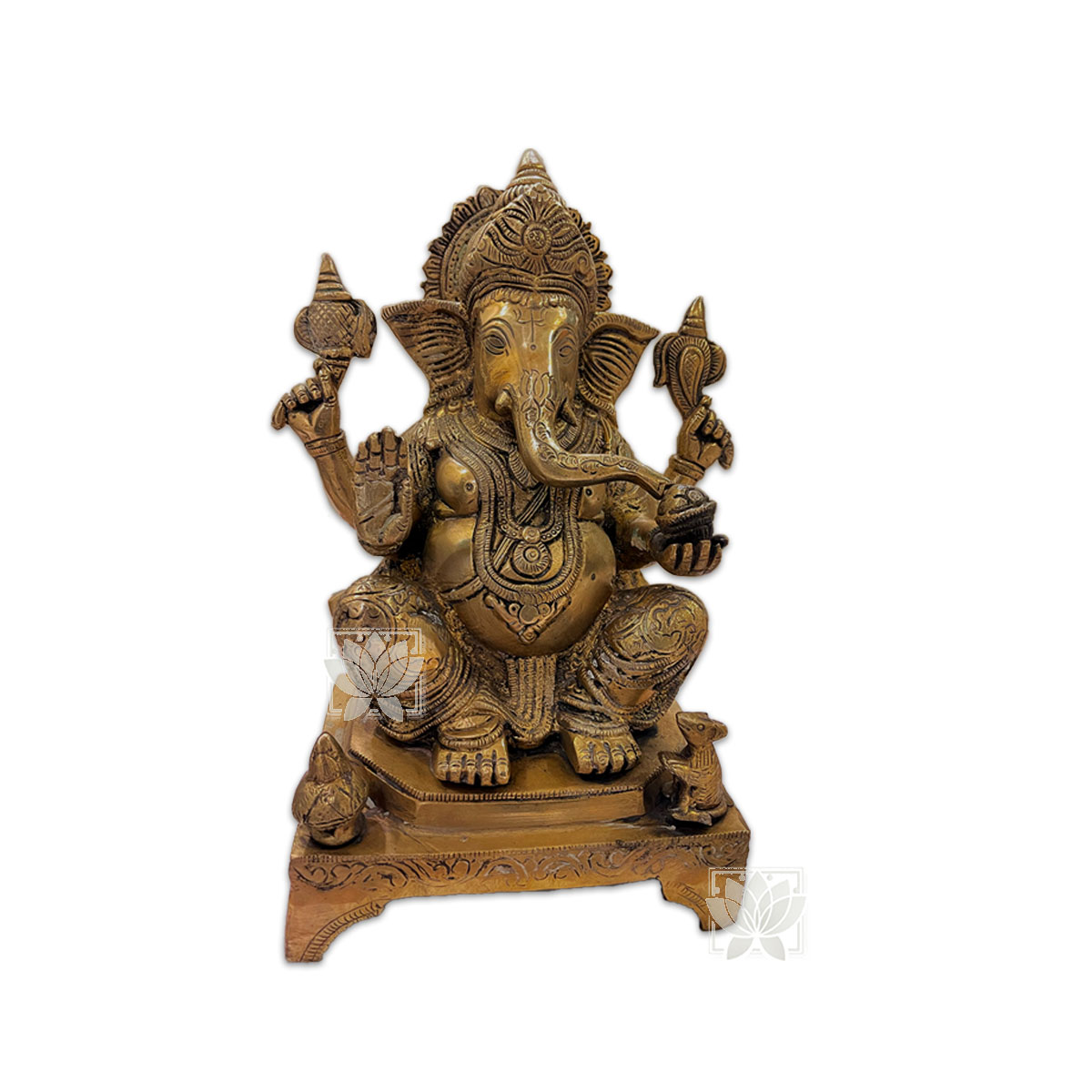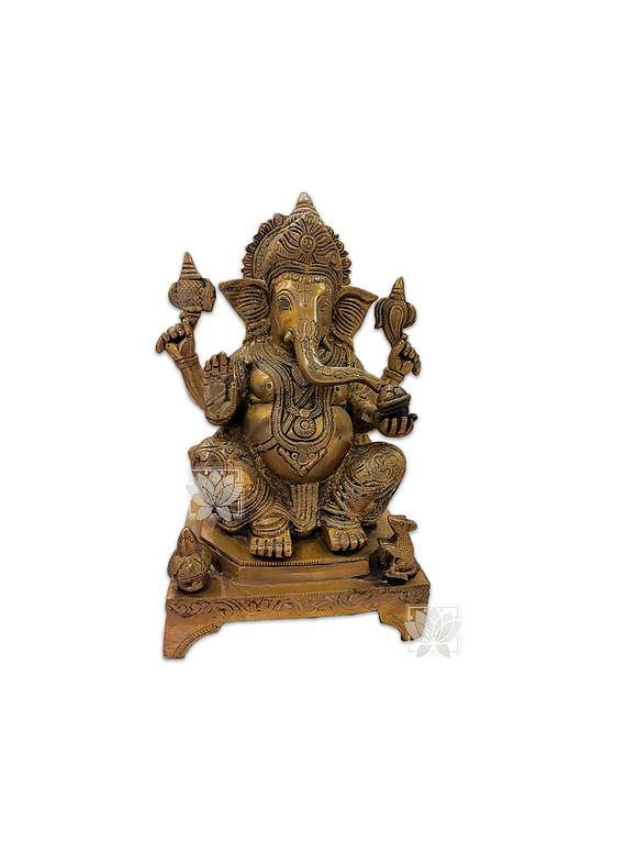 Dios Ganesh Grande en 10", consta de 1 piezas de diseño en bronce y detalles marcados del dios ganesh.