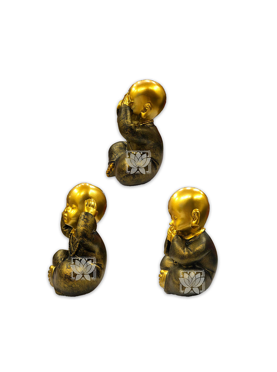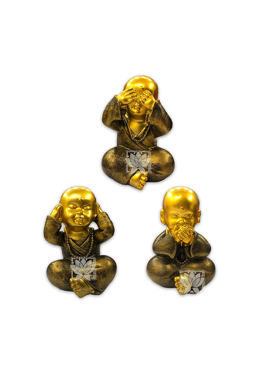 Set de Figura Buda Ciego, Sordo y Mudo, Poliresina 5", diseño poliresina con rasgos y detalles marcados de