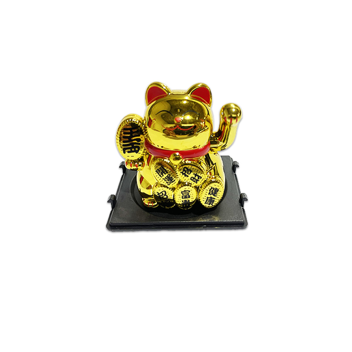 Figura Gato de La Fortuna Dorado con movimiento y se recarga con energía solar.