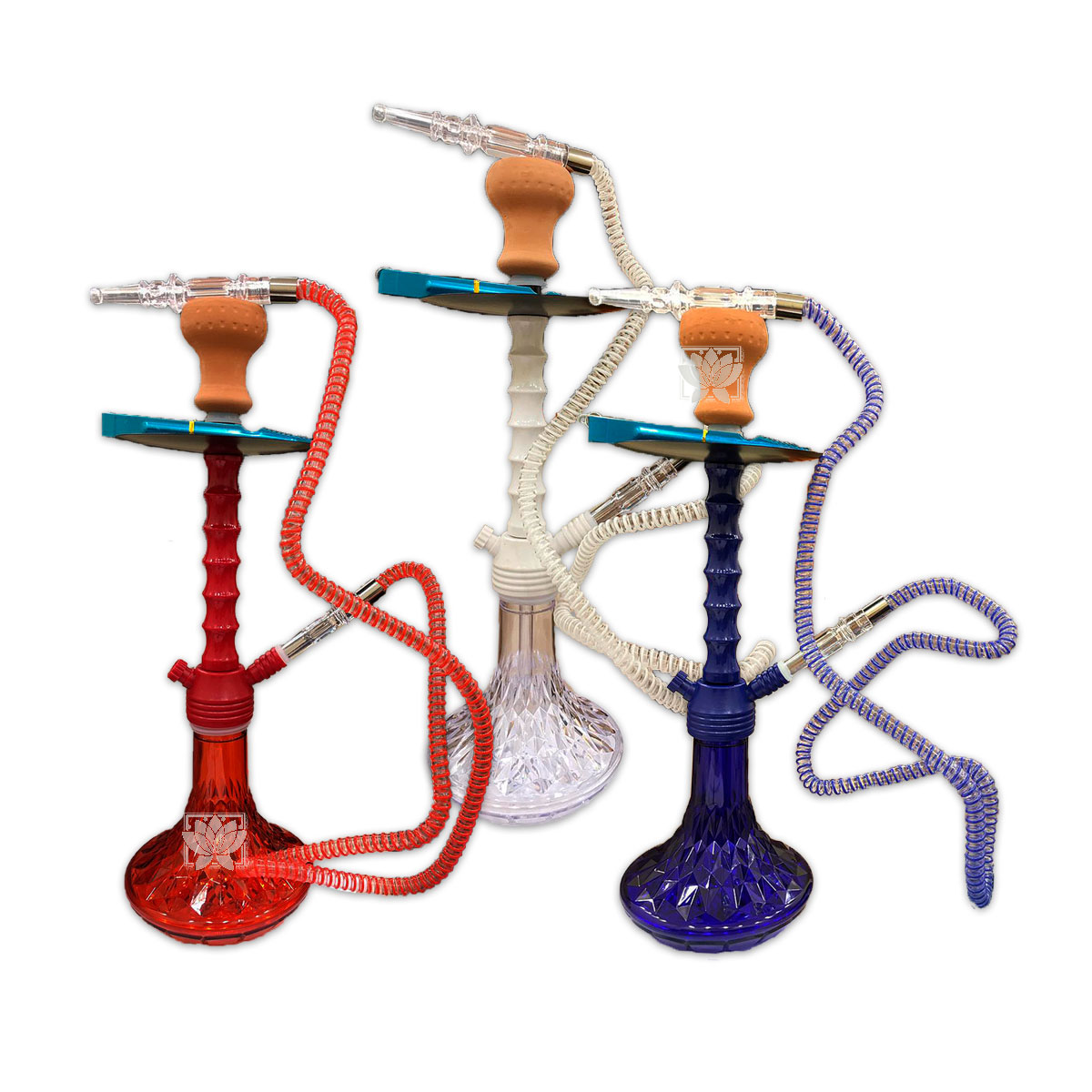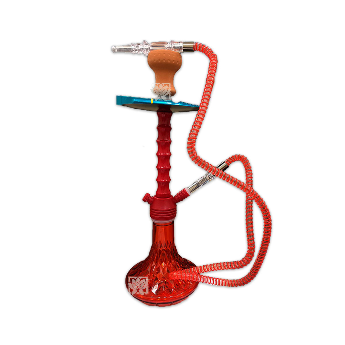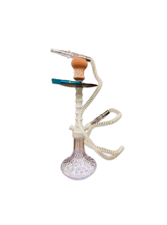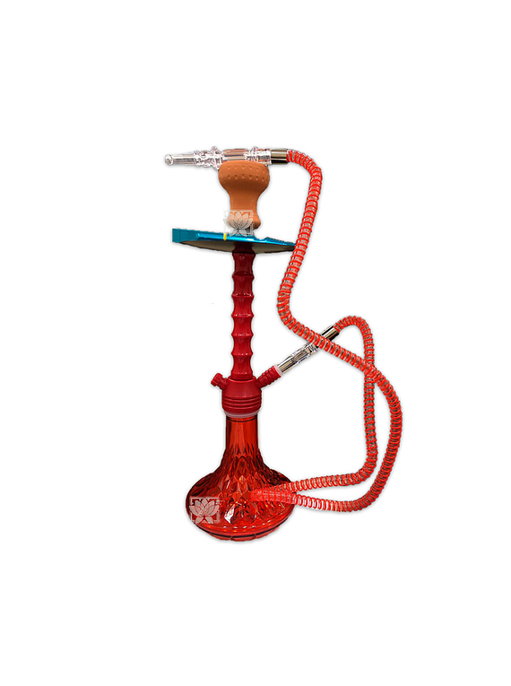 Hooka o Nargile Acrilio 51,5 cms ,La hookah (narguile, shisha, goza) es una pipa de agua, usada para tabaco saboreado llamado maassel. El maassel se calienta con carbón que produce un humo que pasa mediante un artilugio florido e inhalado vía una manguera.