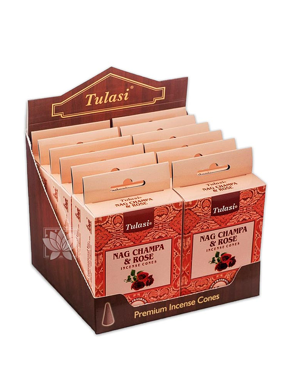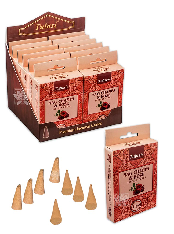 Conos de Incienso Nag Champa Tulasi, Nag Champa tulasi para perfumar con su sutil aroma armonizando tu hogar y combinarlo.