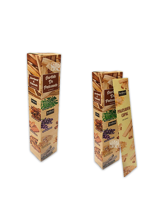 Incienso Krishna 7en1 Surtido de Palo Santo, hecho con hierbas,aceites esenciales, resinas y para darte una experiencia saludable y segura. Elaborados a mano en agarbathi.