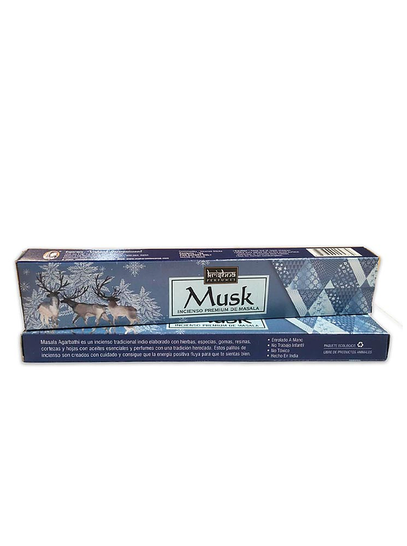 Incienso Krishna Premium Musk hecho con hierbas,aceites esenciales, resinas y para darte una experiencia saludable y segura.