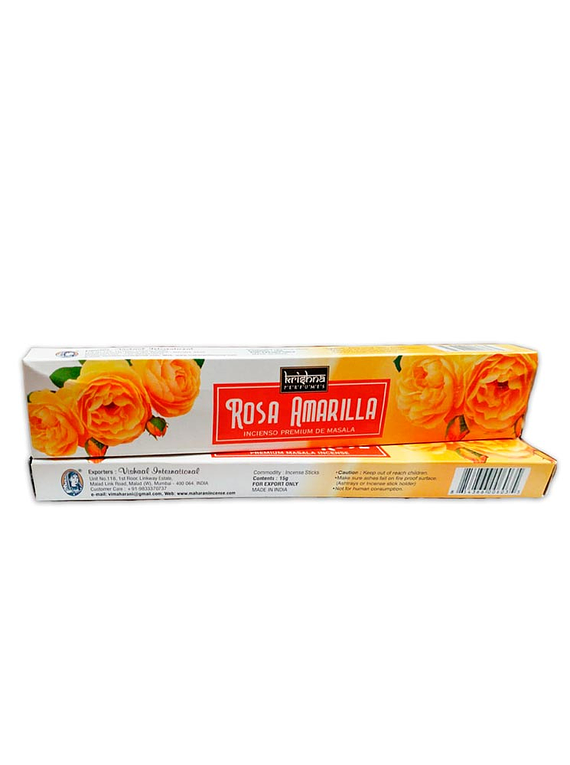 Incienso Krishna Premium Rosa Amarilla hecho con hierbas,aceites esenciales, resinas y para darte una experiencia saludable y segura.