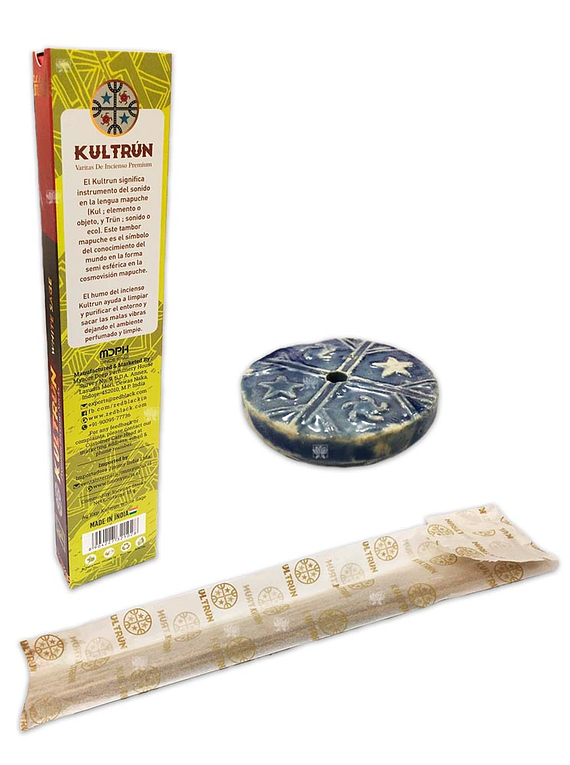 Cada cajita incluye un porta incienso con la forma de un Kultrún