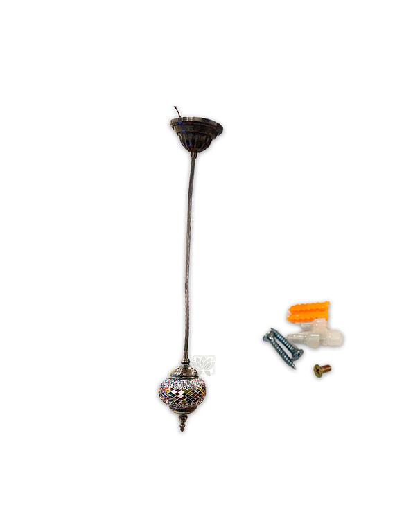 Medidas: 102 cm de Alto con la base del techo x 14 cm de Diámetro de la esfera de vidrio lampara