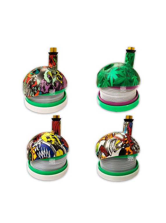 Es como un acordeón cuando se abre se llena de humo. Una pipa muy buena para usar en sitios donde da mucho el aire y sobre todo en fiestas. El Bong Bukket funciona cuando lo levantas este se llena de humo, cuando este completamente lleno inhala todo