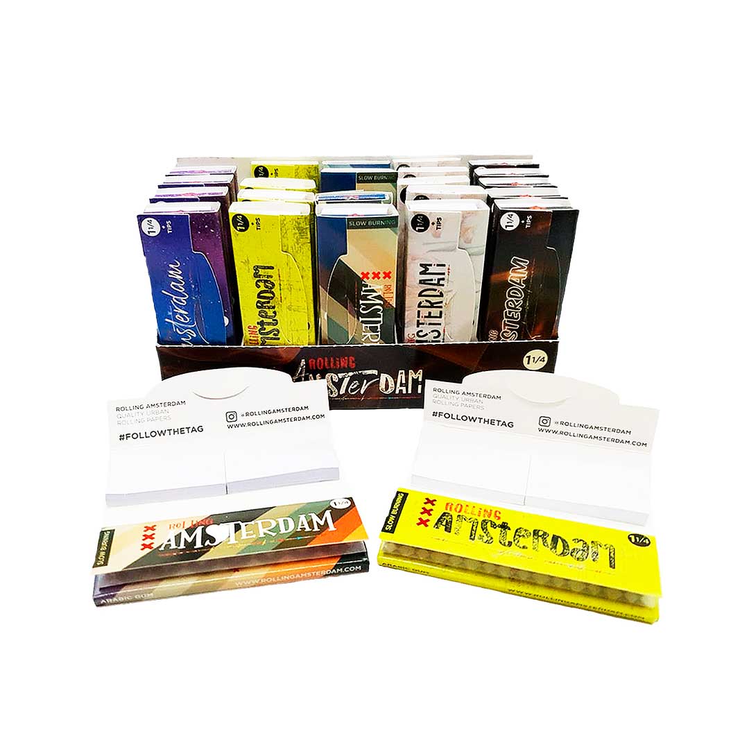 El papel de fumar Rolling Amsterdam Slow Burning (Combustión Lenta)es uno de los que mayor calidad ofrece en todo el mercado, pero no sólo es la composición del papel lo más importante y destacable que tiene, sino que también tiene una amplia gama de variedades como muy pocas otras marcas puede ofrecer.