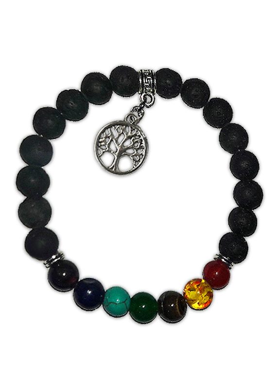Pulsera 7 Chakra y Árbol con piedras volcánica o también llamada como (lava) es la piedra protectora de la naturaleza. Ayuda a proteger contra mal de ojo , envidia y las piedras de 7 Chakra ayuda en alinear las Chakras. Esta pulsera esta destinada para absorber cualquier energía negativa.