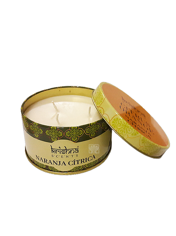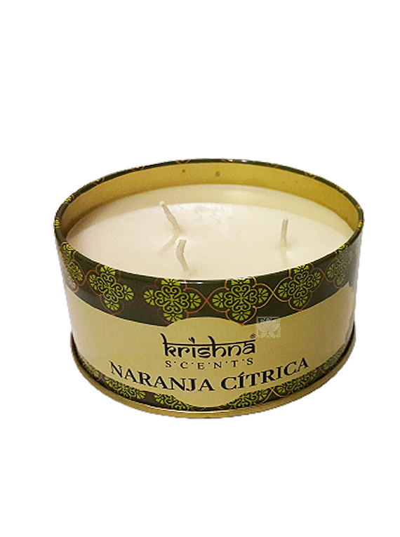 Velas Aromáticas Lata (Mecha Triple) Krishna para aromaterapia traídas directamente desde la India, con aromas naturales,Duraderos y agradables e ideales para aromatizar tu hogar.