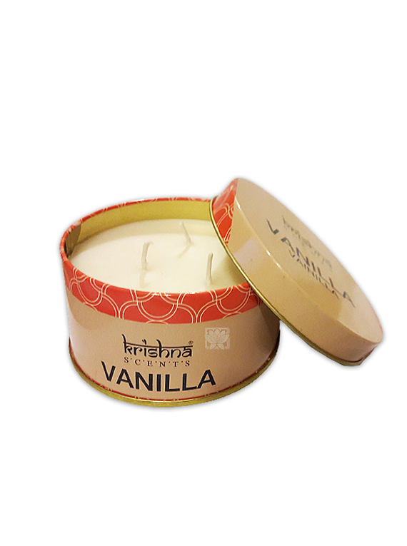Velas Aromáticas Lata (Mecha Triple) Krishna para aromaterapia traídas directamente desde la India, con aromas naturales,Duraderos y agradables e ideales para aromatizar tu hogar.